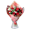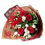 Роза микс красная 50 см, Лизиантус белый, Салал, Сердечко вязь на палочке
